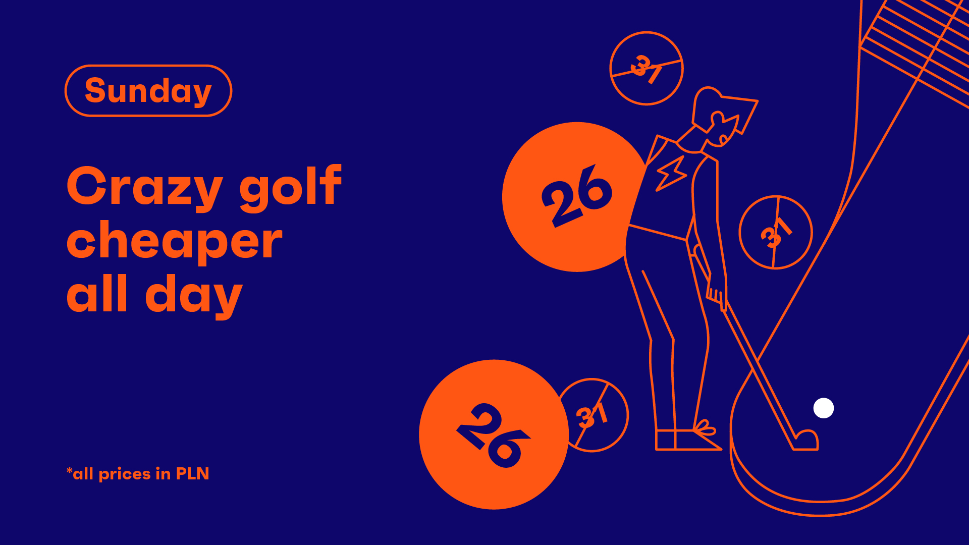 End the weekend with a smile—Crazy Golf is cheaper all day long! The perfect option for a relaxing Sunday with friends.