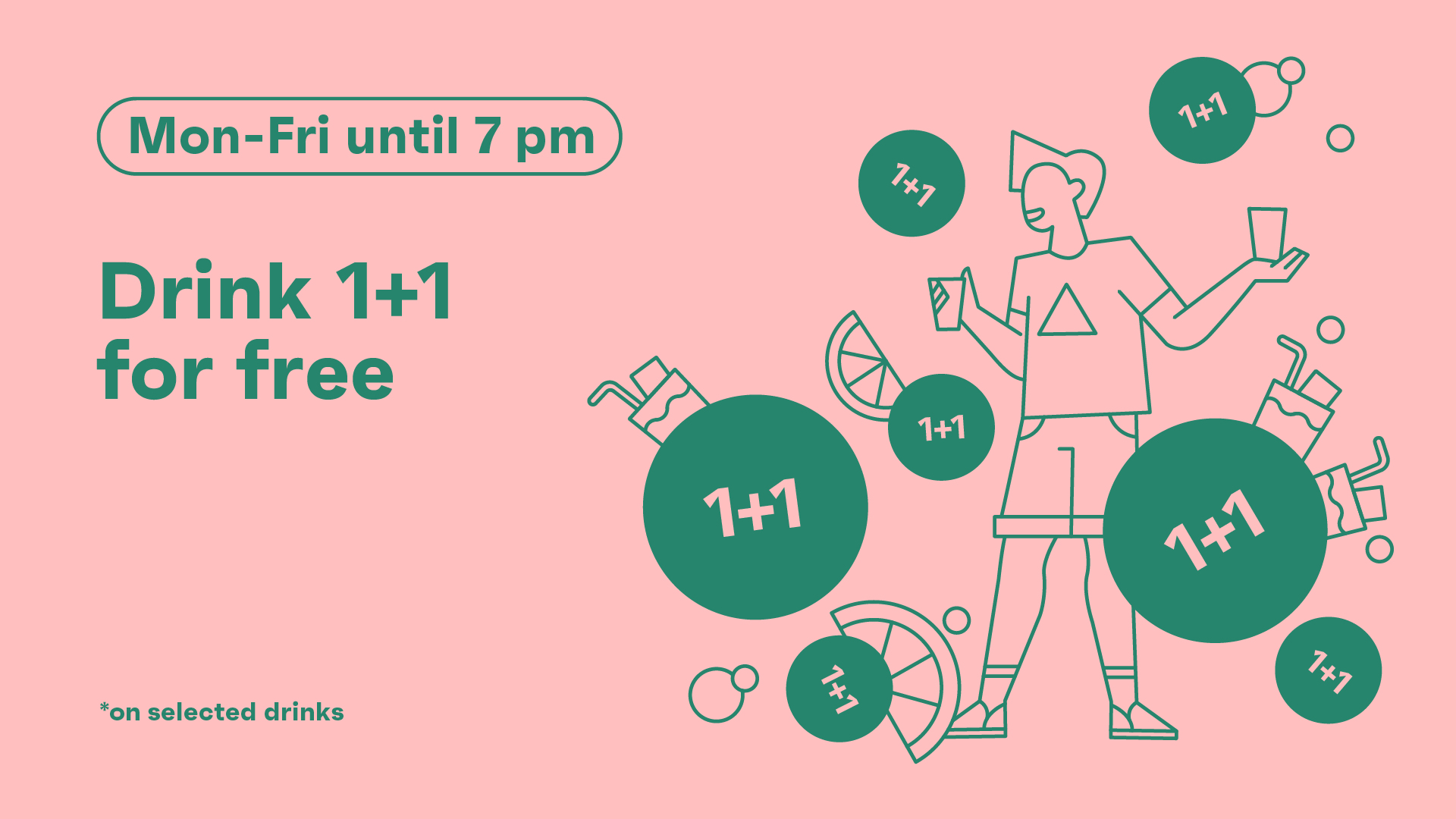 6Monday-Friday until 7 p.m. - 1+1 drink free 🍸