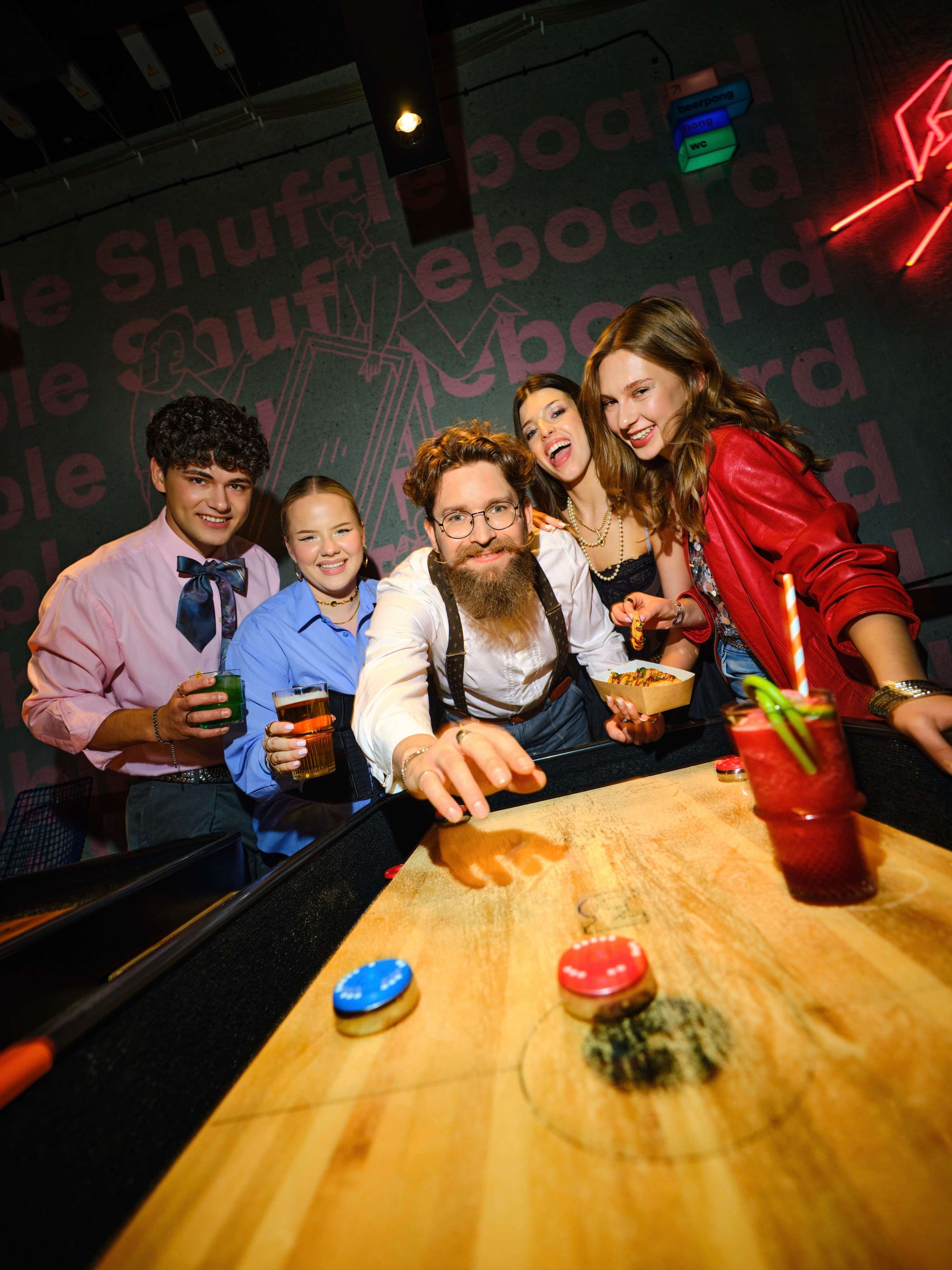 To stołowa wersja klasycznego shuffleboarda. Gramy krążkami na stołach posypanych specjalnym woskiem.